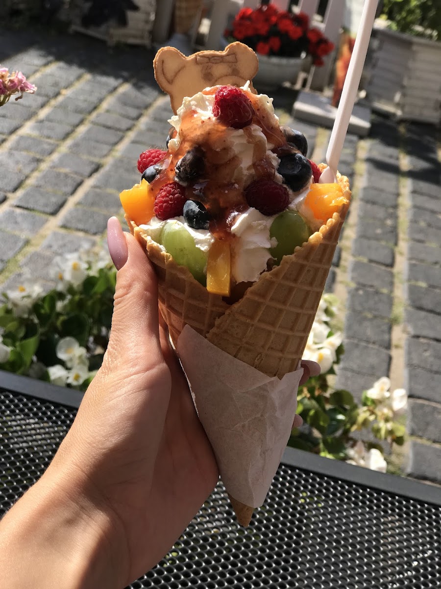 Yummy ice cream and cake. Friendly service. Able to speak German.