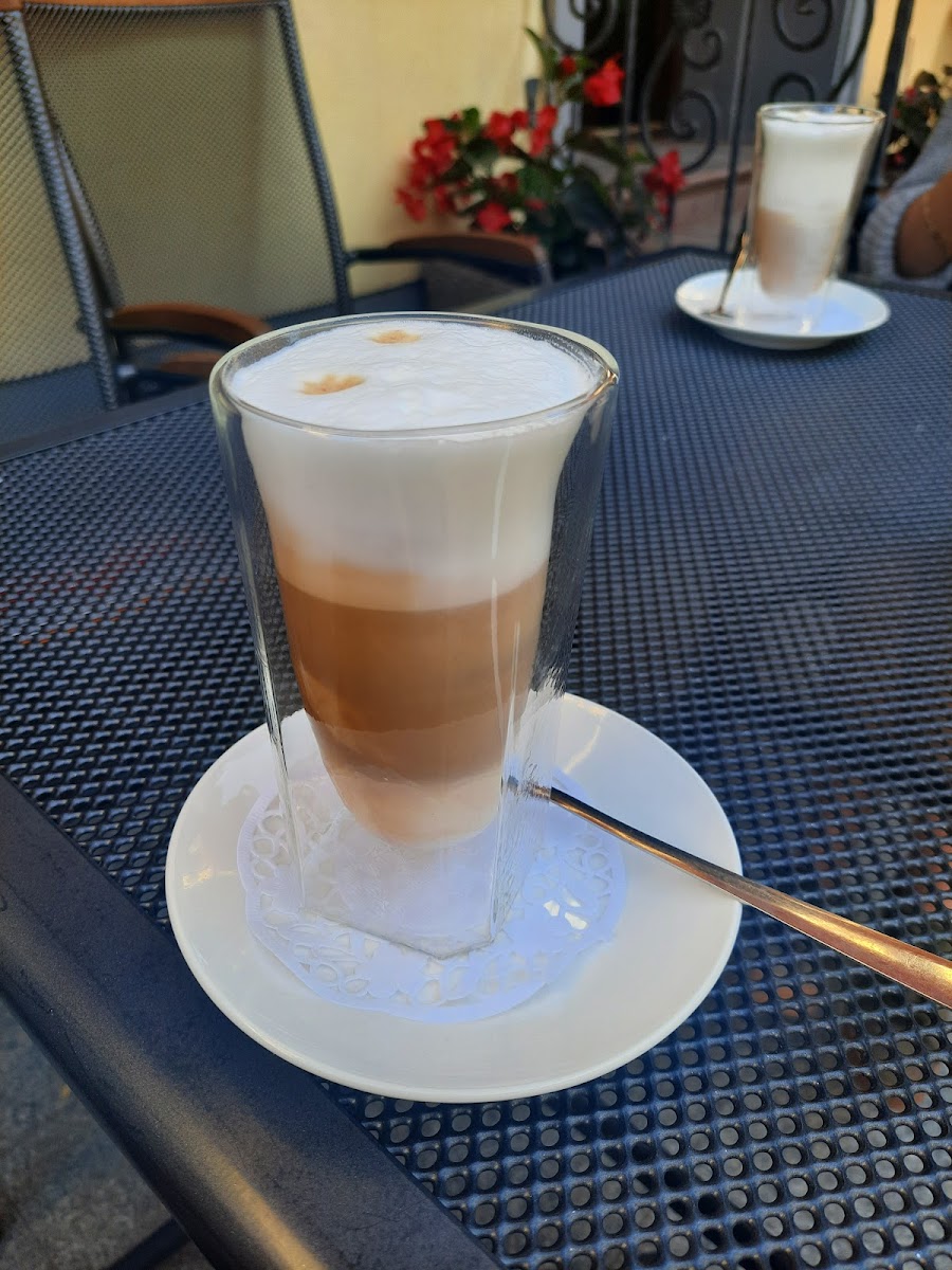 Nice caffe with tasty cakes, coffee, desserts and ice cream! Also there is a nice terrace with a lot of flowers!!!