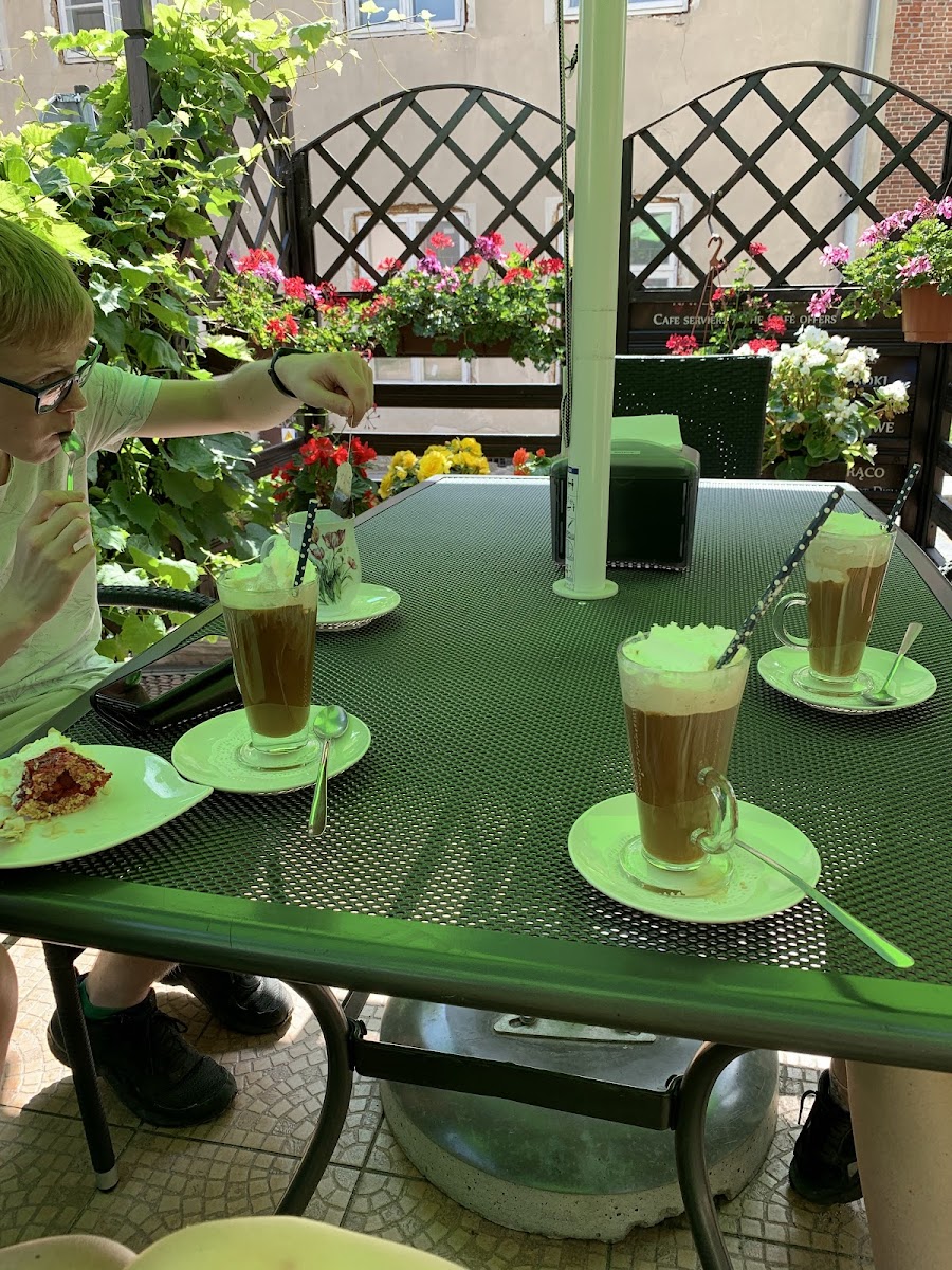 Wspaniale miejsce, gdzie mozna wypic kawke i zjesc ciasto, gofry lub lody. W swoim menu oferuja tez bubble tea, i swiezo wyciskany sok pomaranczowy i wiele wiecej. Ceny sa konkurencyjne, obsluga przemila i miejsce na zewnatrz pieknie ustrojone kwiatami. Polecam.